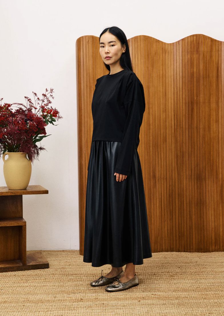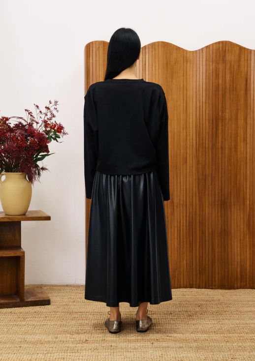 Jupe longue similicuir. Deux poches. Élastique à la taille.