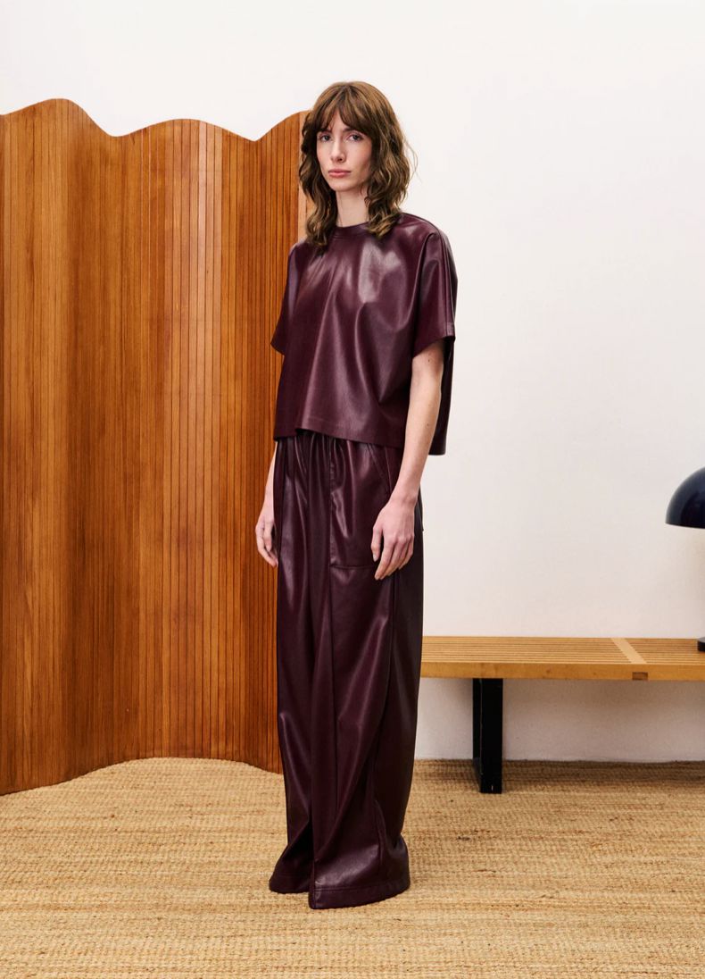 Pantalon droit similicuir.Deux poches. Élastique à la taille.