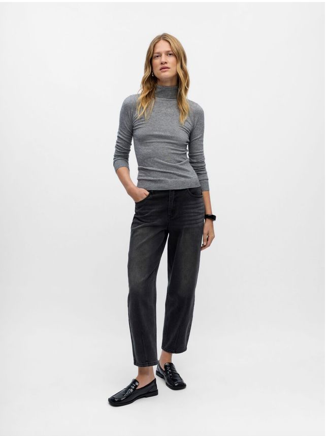 Pull en maille à manches longues. Col roulé. Tissu et léger stretch. Ourlets tricotés.