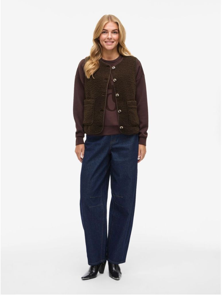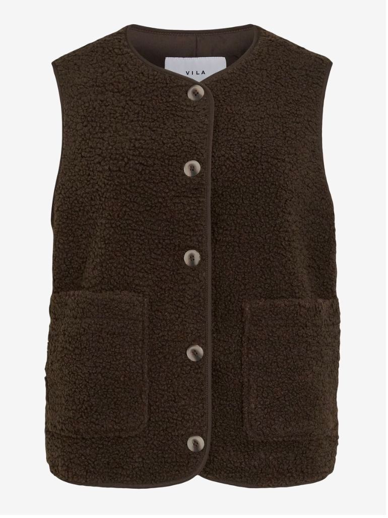 Gilet duveteux. Fermeture boutonnée sur le devant. Col rond. Poches avant. Doublure intégrale. Coupe classique.