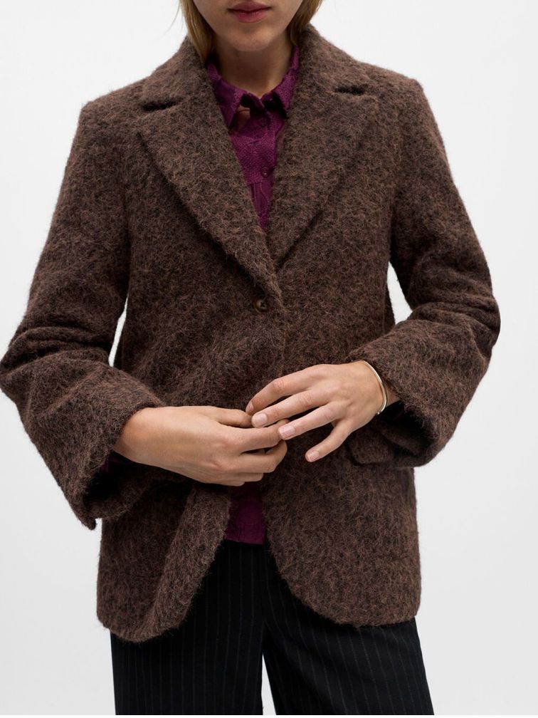 Blazer long à simple boutonnage. Revers crantés. Manches longues. Fermeture par 2 boutons.