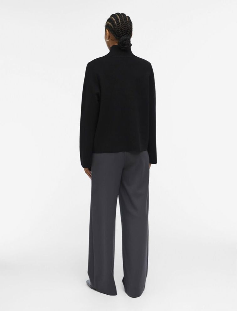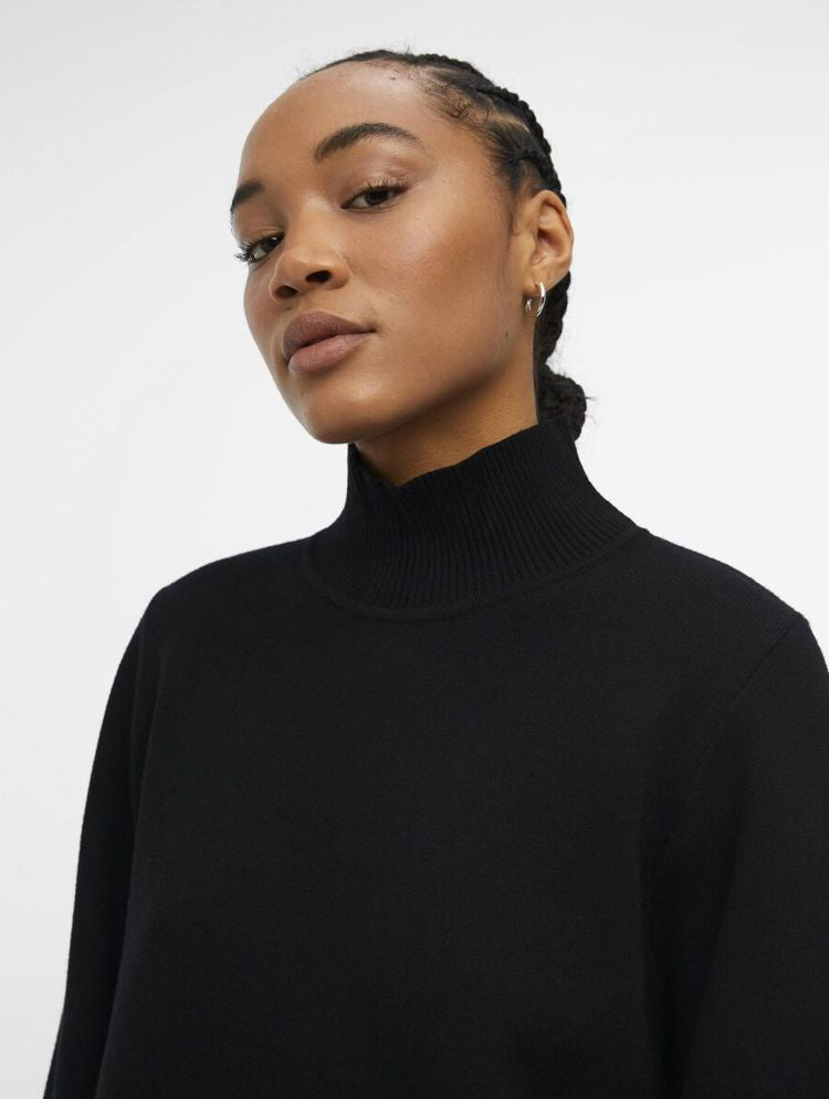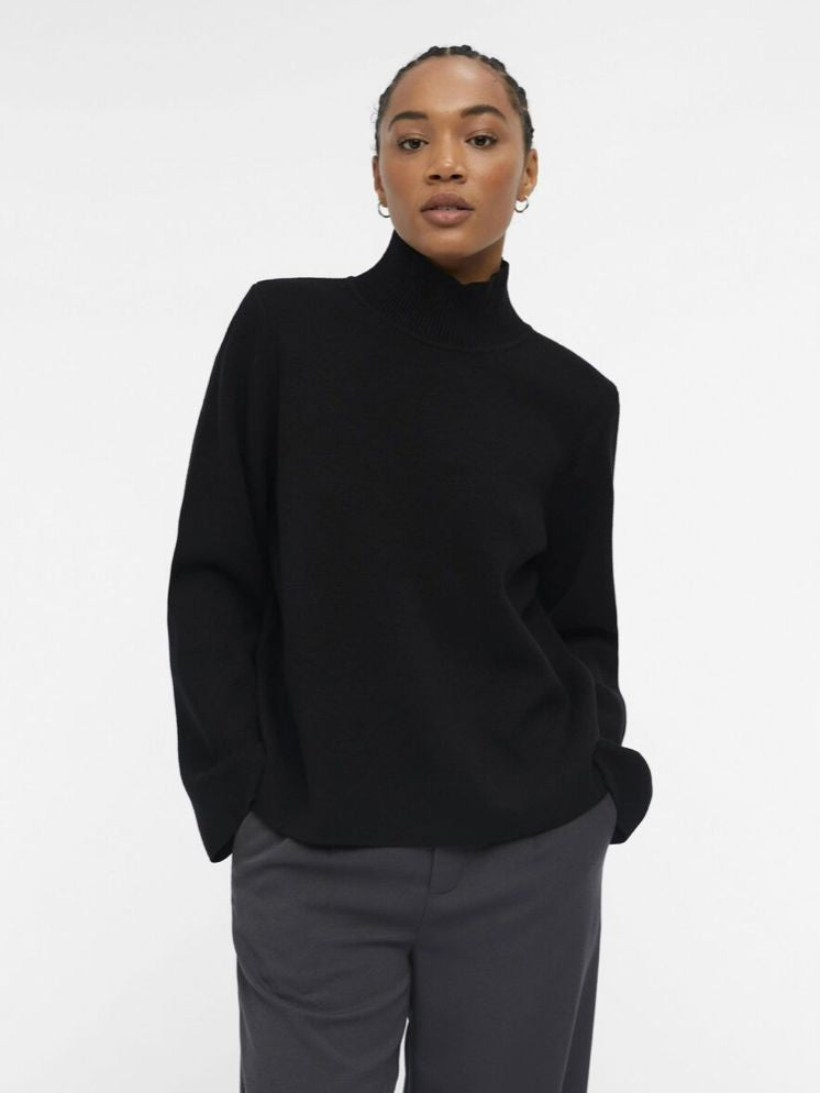 Pull en maille à col montant. Manches longues larges. Bordures côtelées. Tissu doux au toucher. Coupe ample.